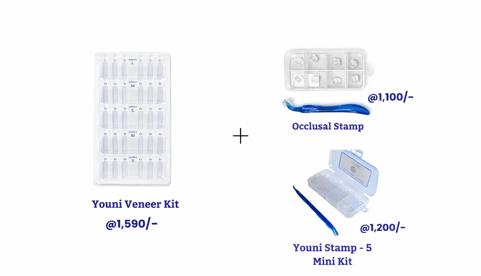 Answer: The youni veneer kit is a dental product designed for creating customized dental veneers. the holi offer includes the youni veneer kit, an occlusal stamp, and a youni stamp 5 mini kit, all for ₹3,500.