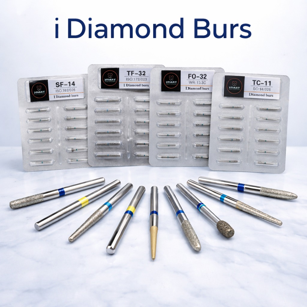 Answer: I diamond burs feature a medical-grade tungsten carbide core coated with industrial diamonds. this combination ensures long-lasting cutting efficiency and high wear resistance.