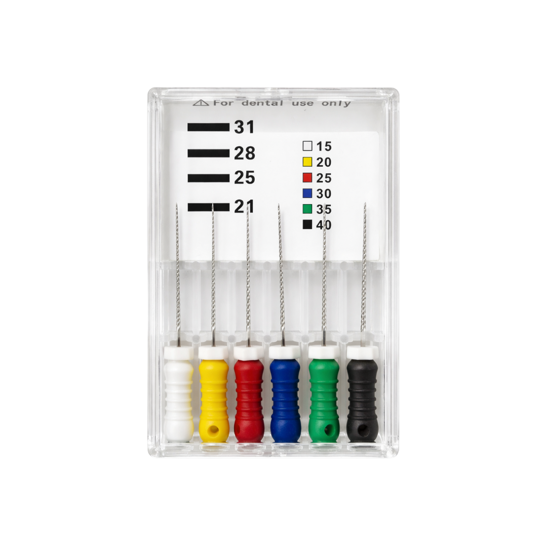 The K File is a high-quality manual endodontic instrument designed for efficient canal negotiation, shaping, and cleaning. Manufactured with precision and durability in mind, it ensures smooth tactile control and reliable performance during root canal procedures.