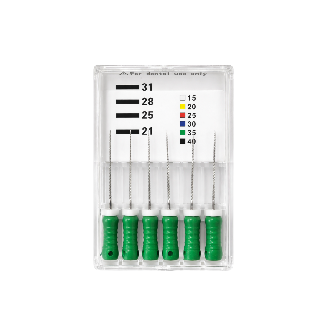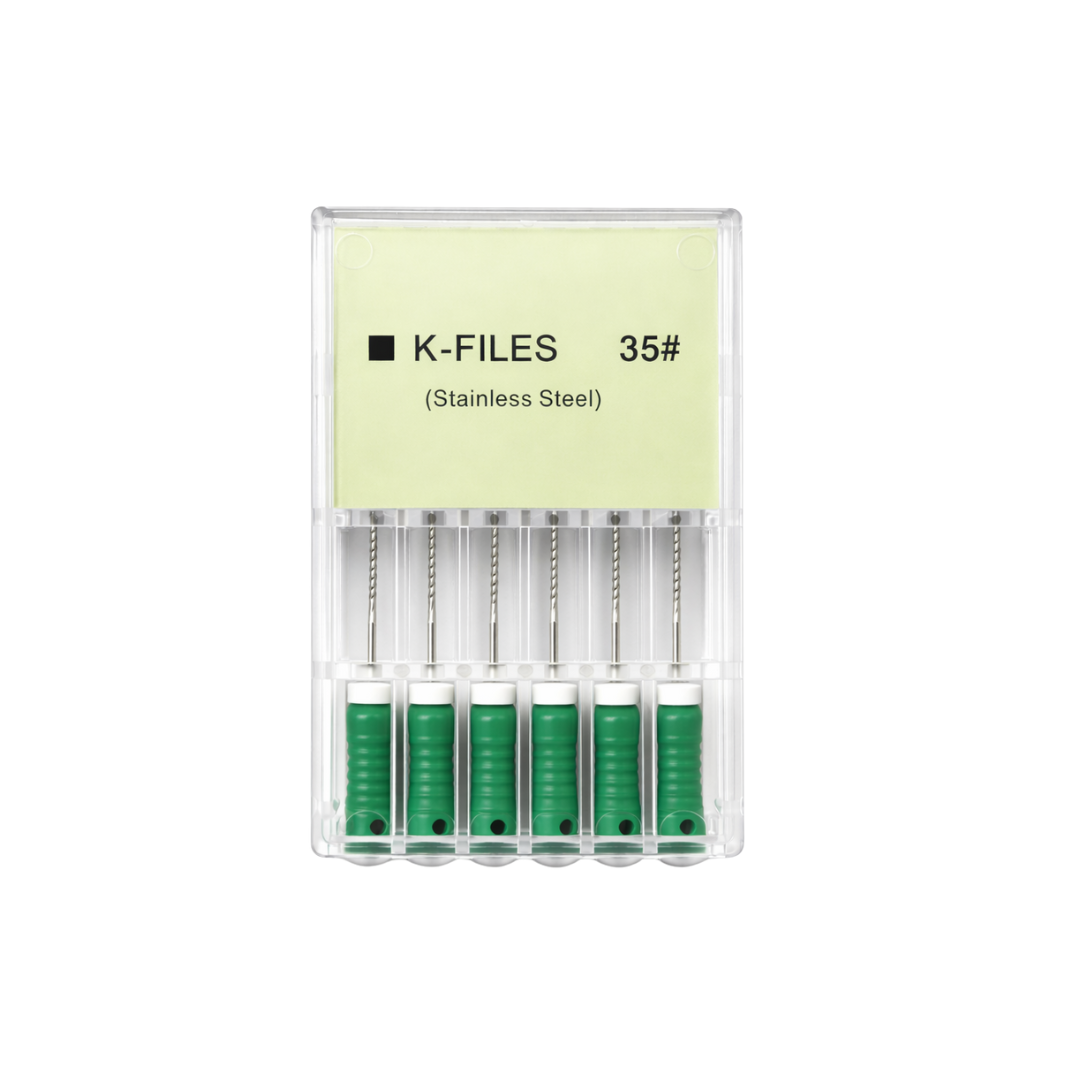Answer: The k file works by mechanically scraping and enlarging the root canal walls to remove debris and infected tissue, allowing for proper cleaning and shaping.