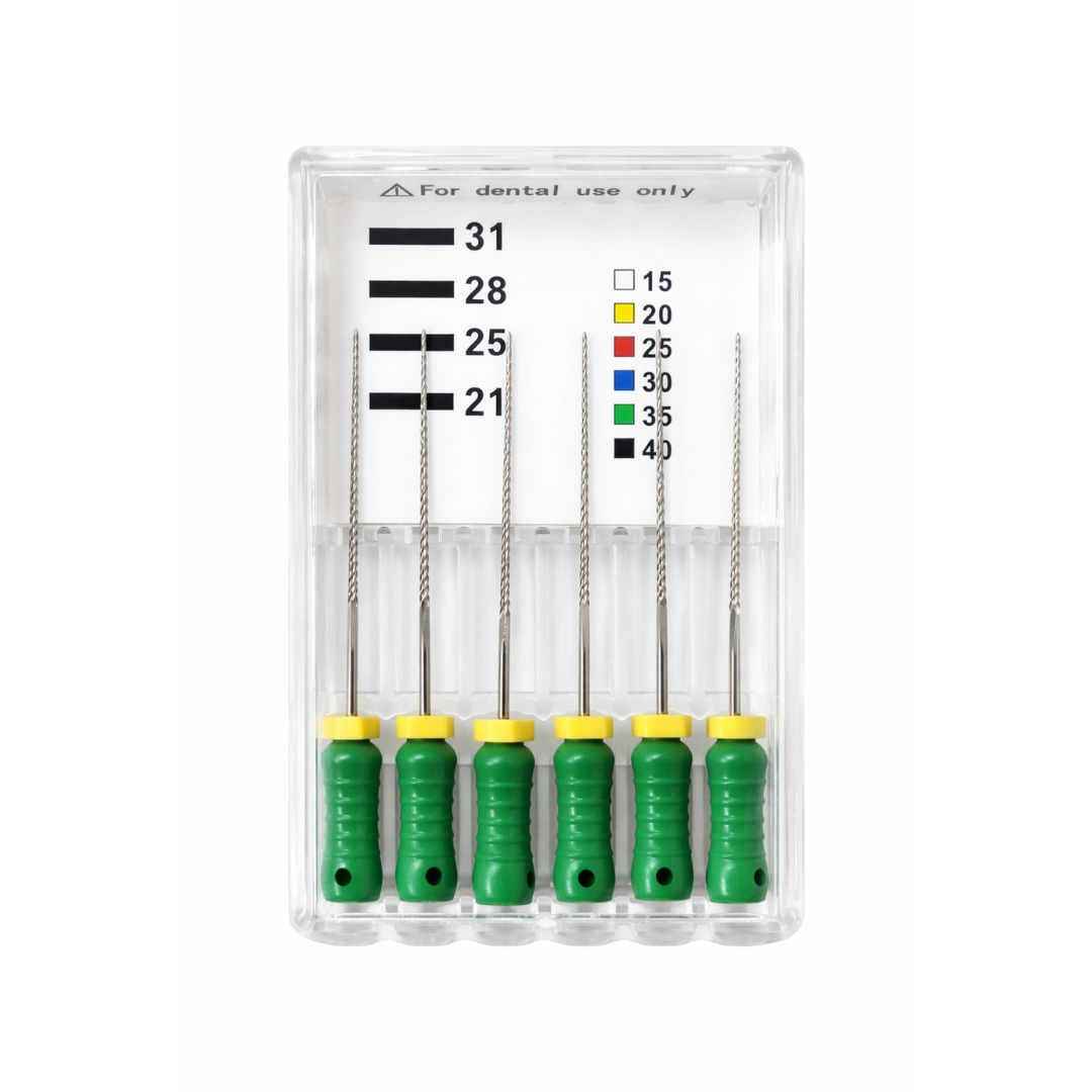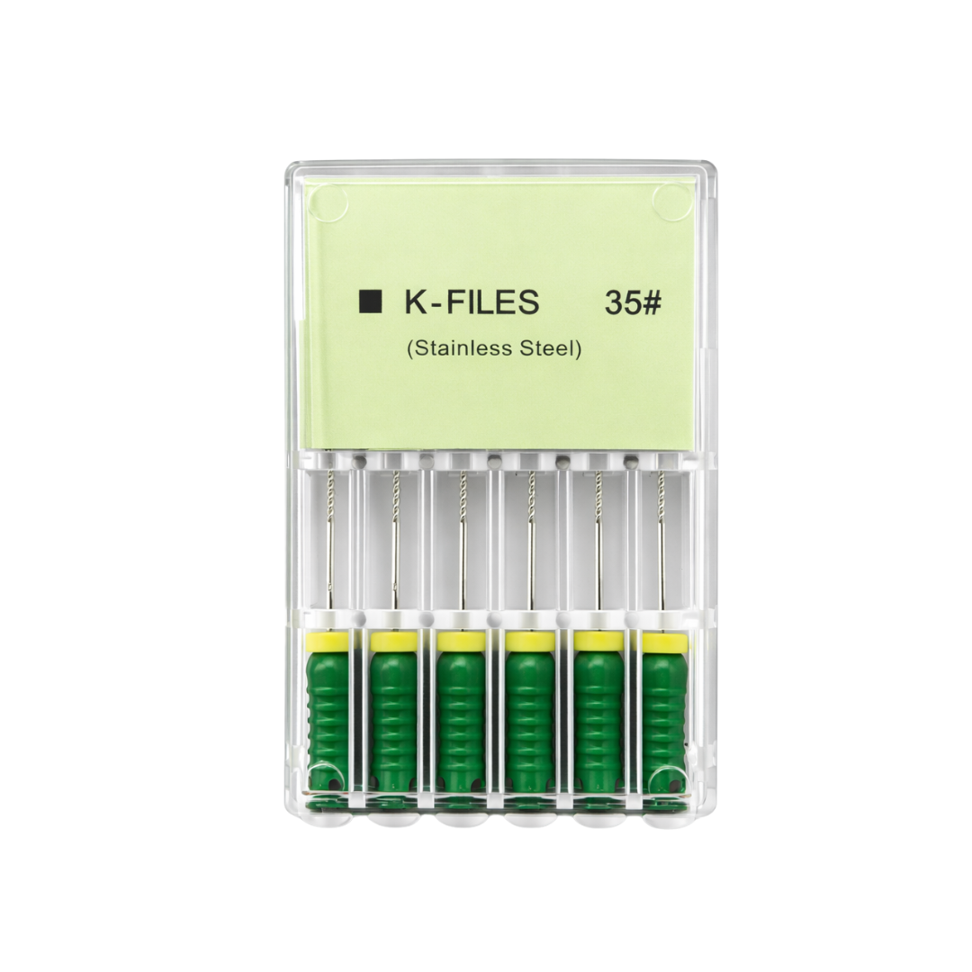 The K File is a high-quality manual endodontic instrument designed for efficient canal negotiation, shaping, and cleaning. Manufactured with precision and durability in mind, it ensures smooth tactile control and reliable performance during root canal procedures.