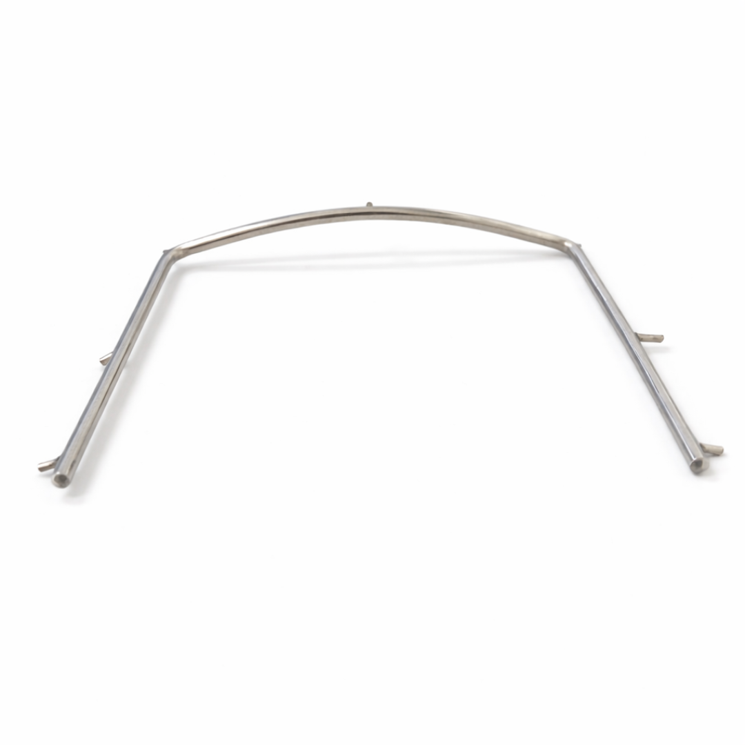 Answer: A rubber dam metal frame is a u-shaped stainless steel frame used to securely hold rubber dam sheets during dental procedures.