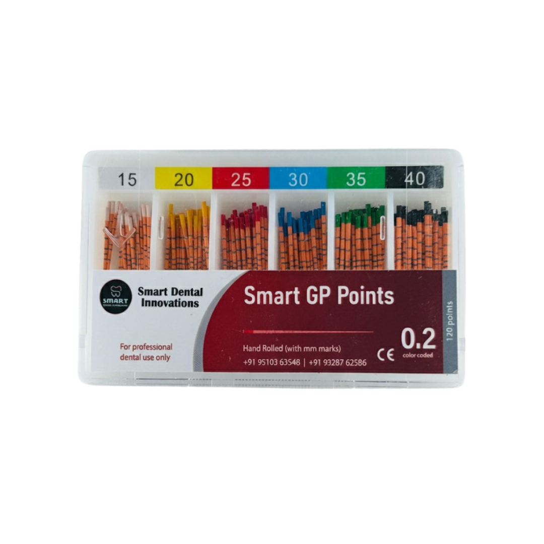 Smart GP Points are premium quality gutta-percha points designed for precise, predictable, and hermetic obturation in root canal treatments. Manufactured using the finest raw materials and hand-rolled for consistency, these GP points ensure excellent canal adaptation and reliable sealing performance.