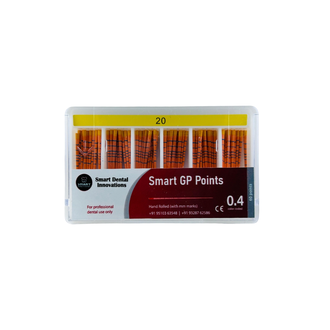 Smart GP Points are premium quality gutta-percha points designed for precise, predictable, and hermetic obturation in root canal treatments. Manufactured using the finest raw materials and hand-rolled for consistency, these GP points ensure excellent canal adaptation and reliable sealing performance.