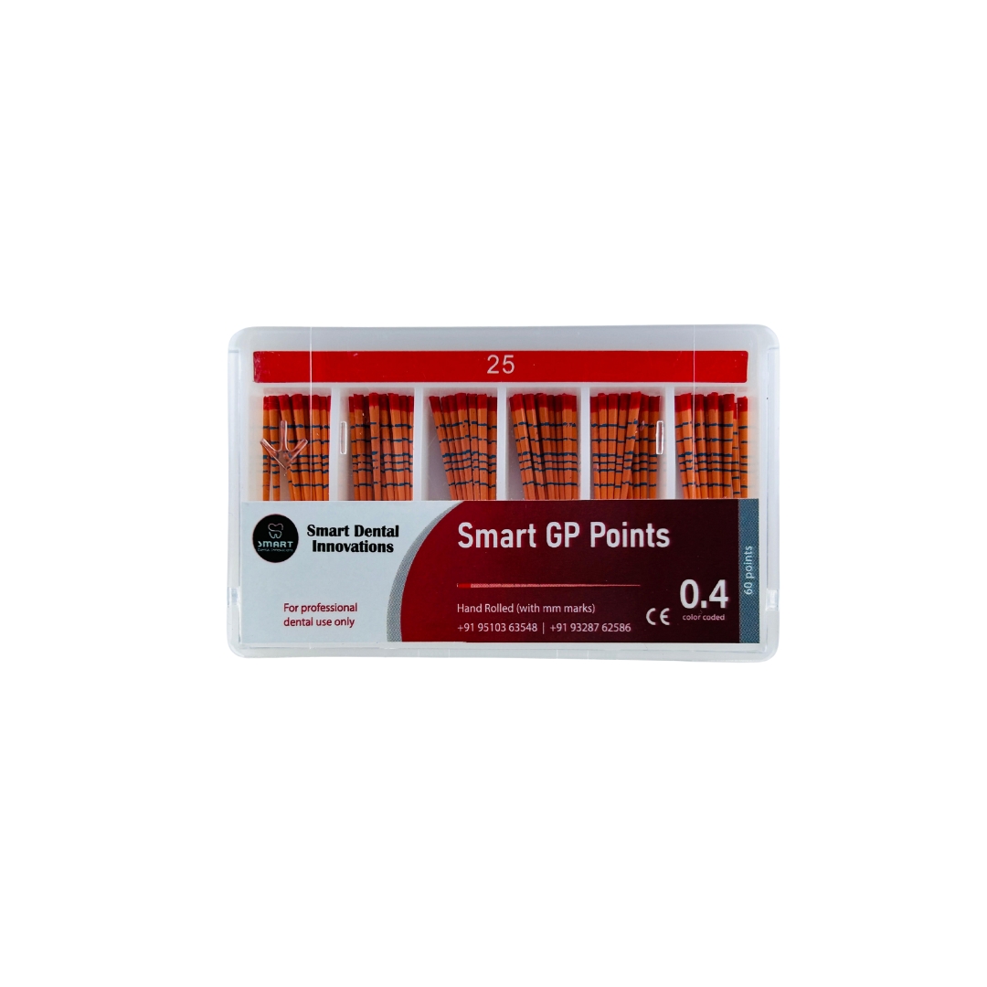Smart GP Points are premium quality gutta-percha points designed for precise, predictable, and hermetic obturation in root canal treatments. Manufactured using the finest raw materials and hand-rolled for consistency, these GP points ensure excellent canal adaptation and reliable sealing performance.
