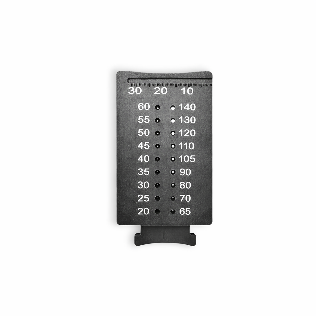 Answer: It works by using clear engraved markings to measure the gutta percha points, allowing clinicians to cut them to the exact working length required for endodontic obturation.