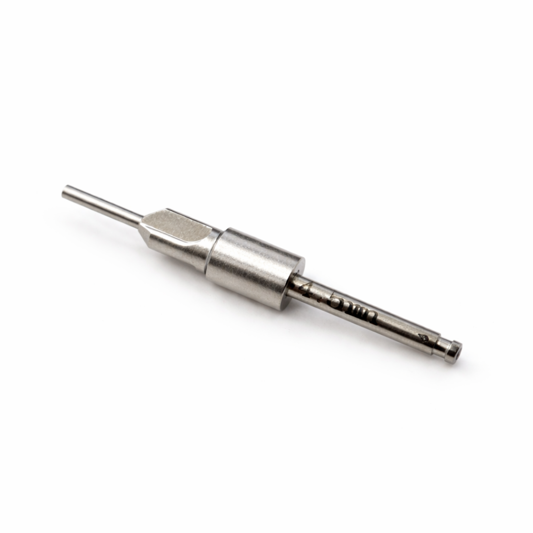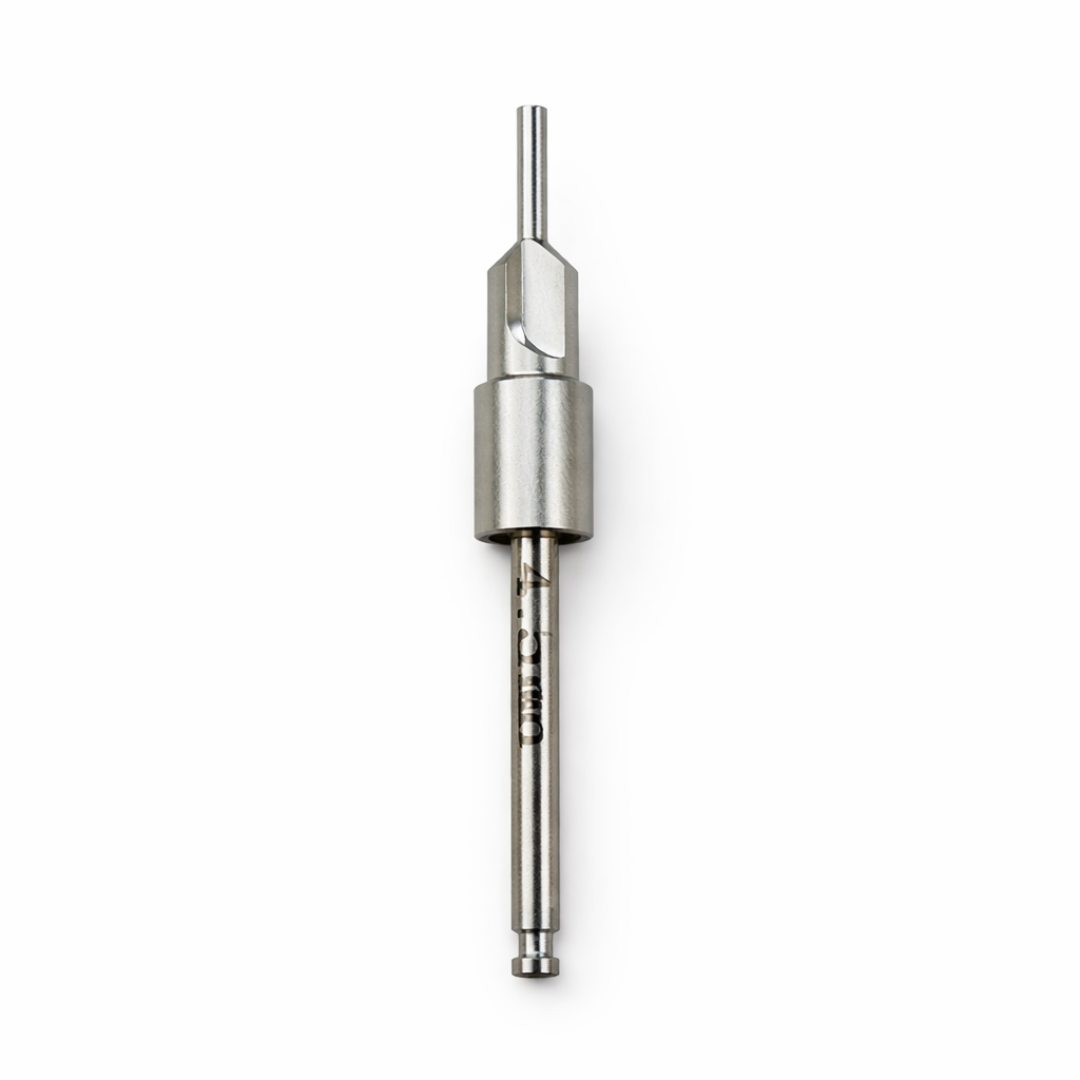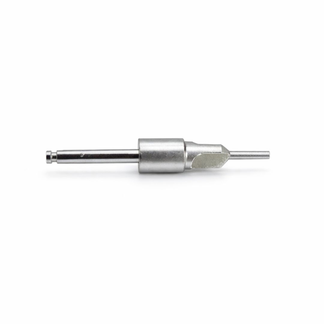 Answer: It operates by cutting and shaping the cortical bone at the implant site with its precisely shaped edges, minimizing compression, preventing bone resorption, and facilitating better implant stability.
