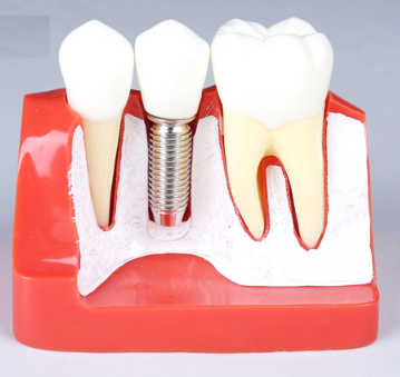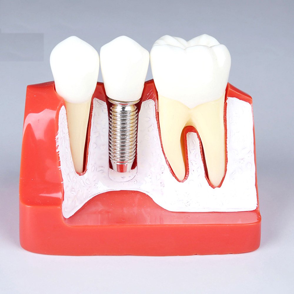 Answer: An implant analysis model is a detailed anatomical jaw model that demonstrates implant placement, stability, and prosthetic configurations such as single-implant versus bridge-supported prostheses. it serves as a teaching aid for dental education and clinical planning.