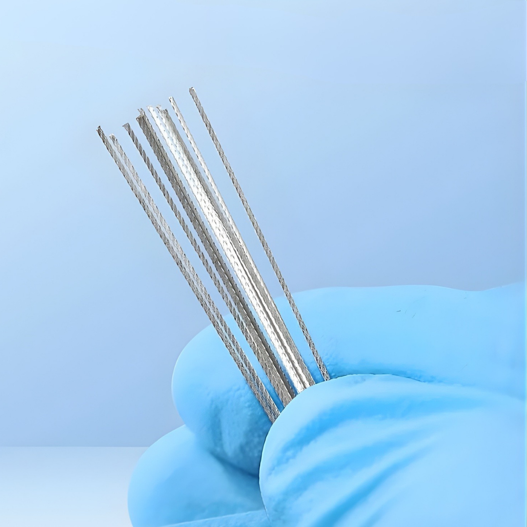 Answer: An implant connector rod is a premium flat braided lingual retainer wire designed to provide secure, discreet, and long-lasting orthodontic retention for both maxillary and mandibular arches.