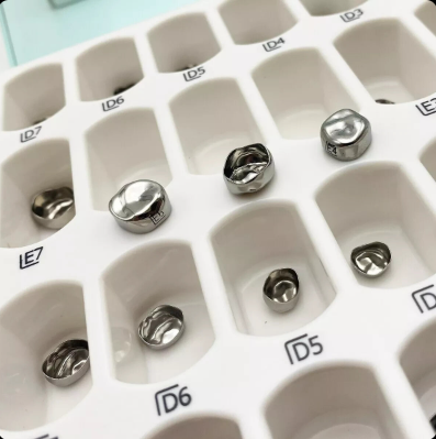 Answer: The kids crown full kit contains pre-formed stainless-steel crowns specifically designed for pediatric dentistry to restore and protect deciduous molars.