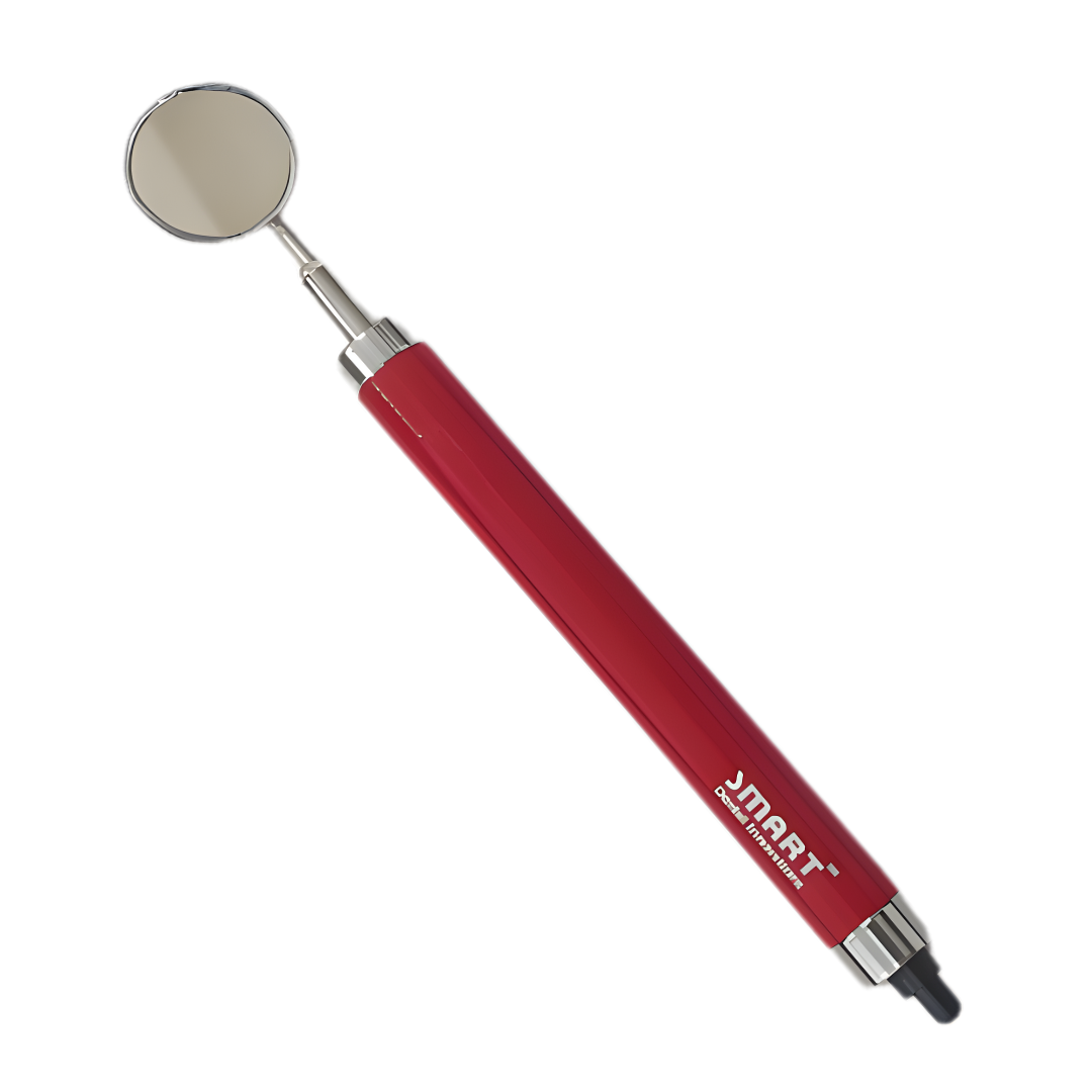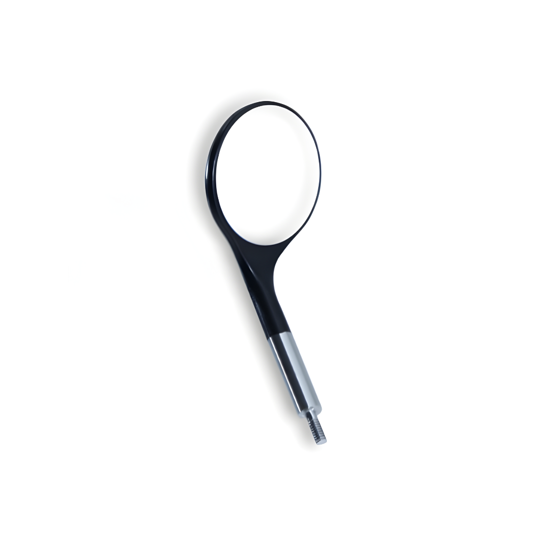Answer: The hd clear mirror with endo guage is a premium dental mirror featuring a clear reflective surface and a black handle. it comes with a built-in endo gauge that helps in precise measurement during endodontic procedures.