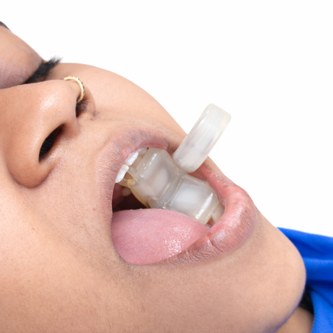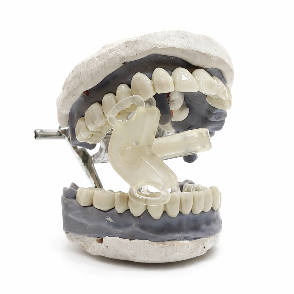 Answer: A mouth support is a dental device, also known as a mouth prop or bite block, placed between the posterior molars to keep the mouth open comfortably during dental treatments.
