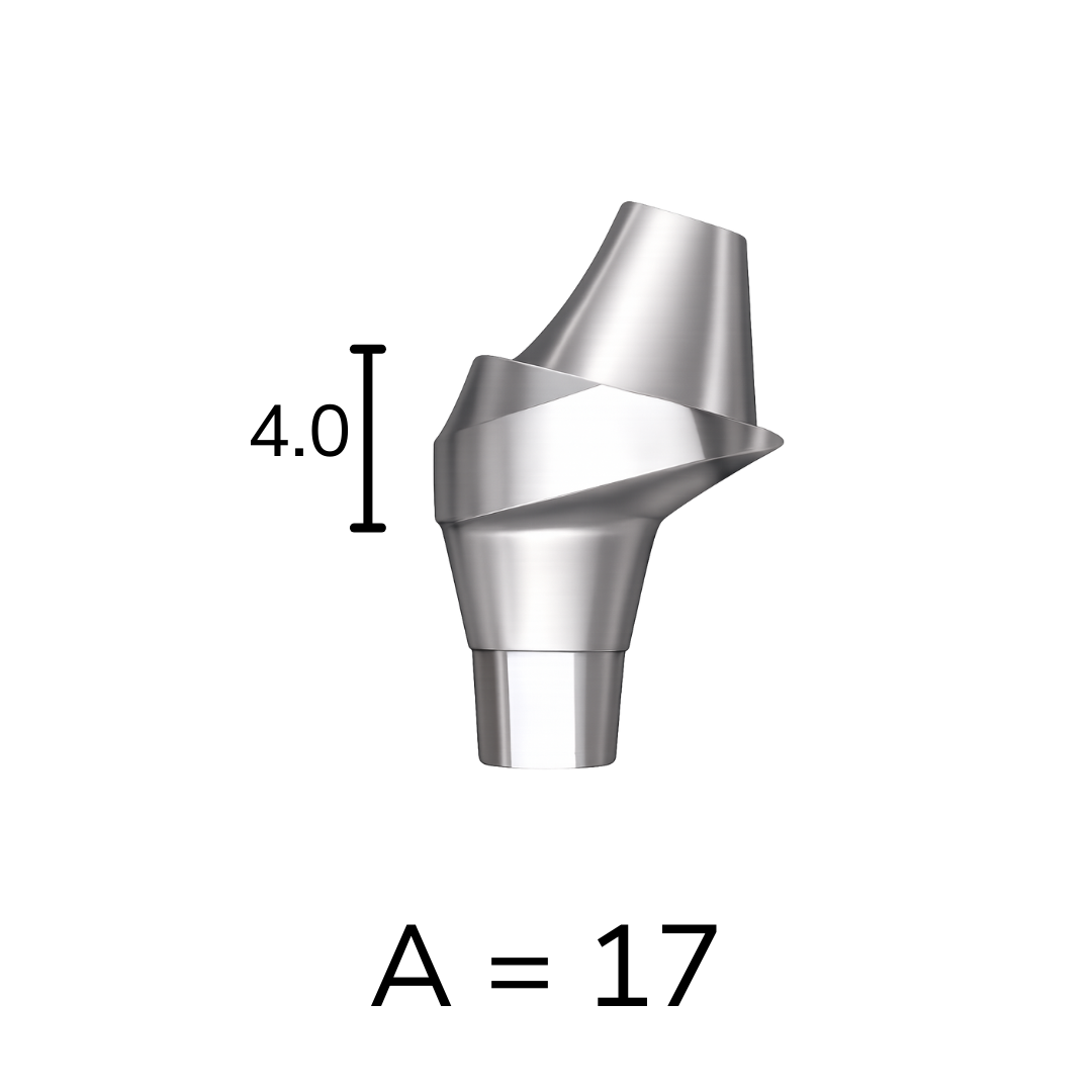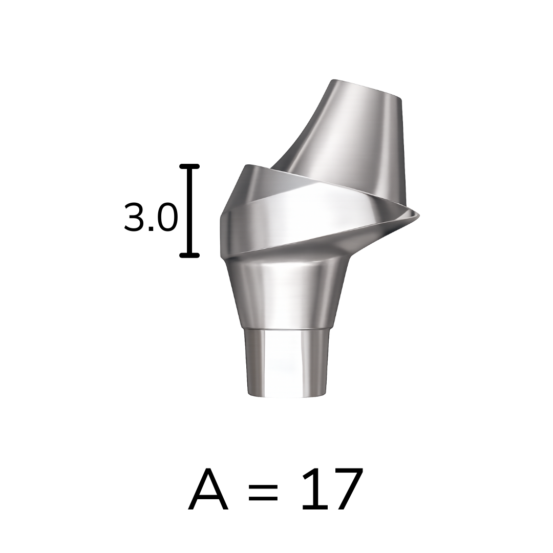 Answer: The abutment is available in 17°, 30°, and 45° angulations.