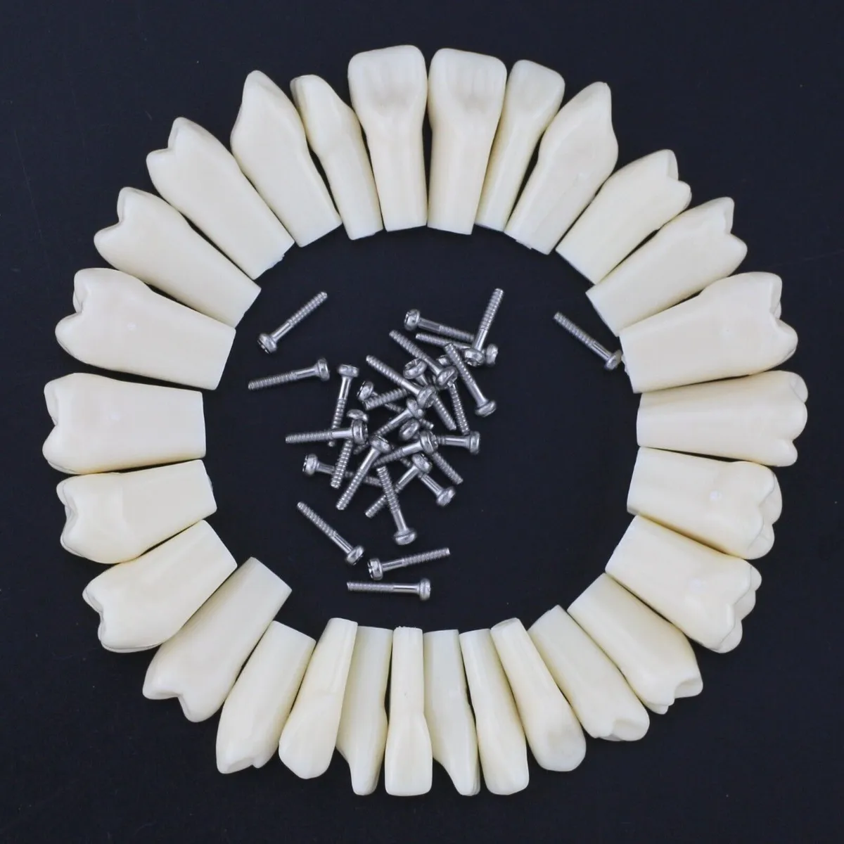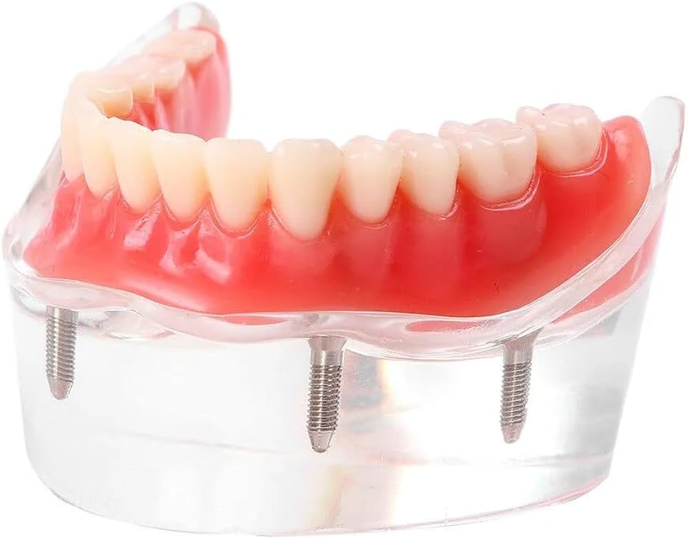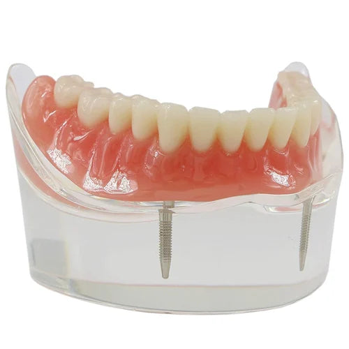 Answer: The model is made of high-grade acrylic and silicone components designed to mimic soft tissue and tooth hardness for realistic tactile feedback.
