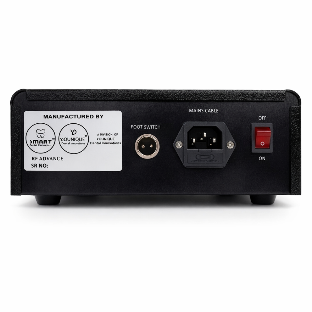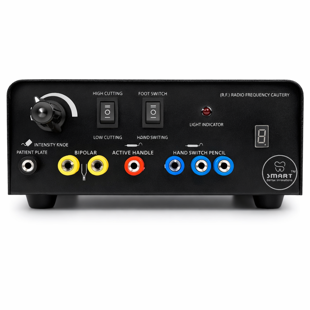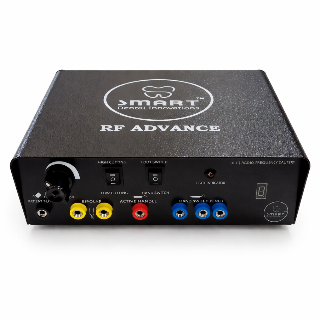 Answer: The radio frequency advance cautery is used for precise soft-tissue cutting and coagulation in dental procedures. it helps achieve minimal tissue damage and excellent hemostasis.