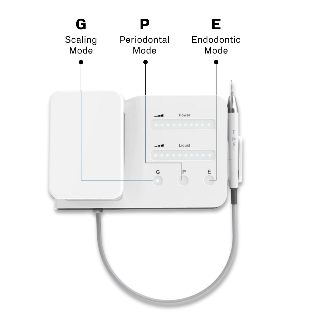 Answer: The ultra scaler pro uses ultrasonic vibrations to remove plaque, tartar, and debris from teeth and beneath the gumline. it offers 10 adjustable power levels and three clinical modes (g/p/e) to suit different dental needs.