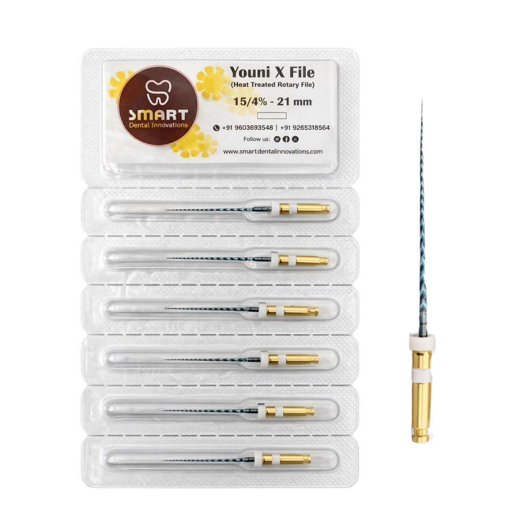 Answer: Youni x file is a high-performance rotary nickel-titanium endodontic file designed for safe, flexible, and efficient root canal shaping. it is heat-treated to enhance flexibility and resistance to file separation.