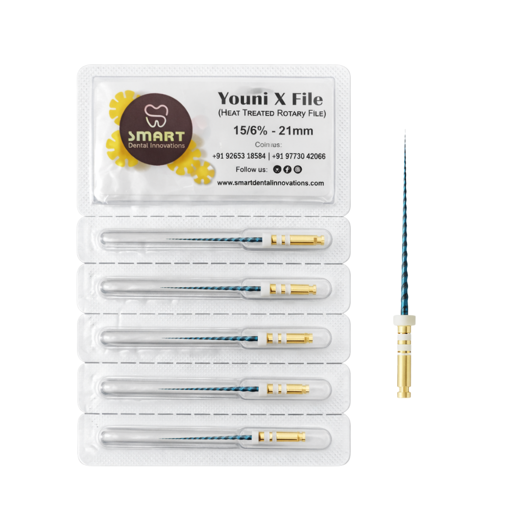 Answer: Youni x file is a high-performance rotary nickel-titanium endodontic file designed for safe, flexible, and efficient root canal shaping. it is heat-treated to enhance flexibility and resistance to file separation.