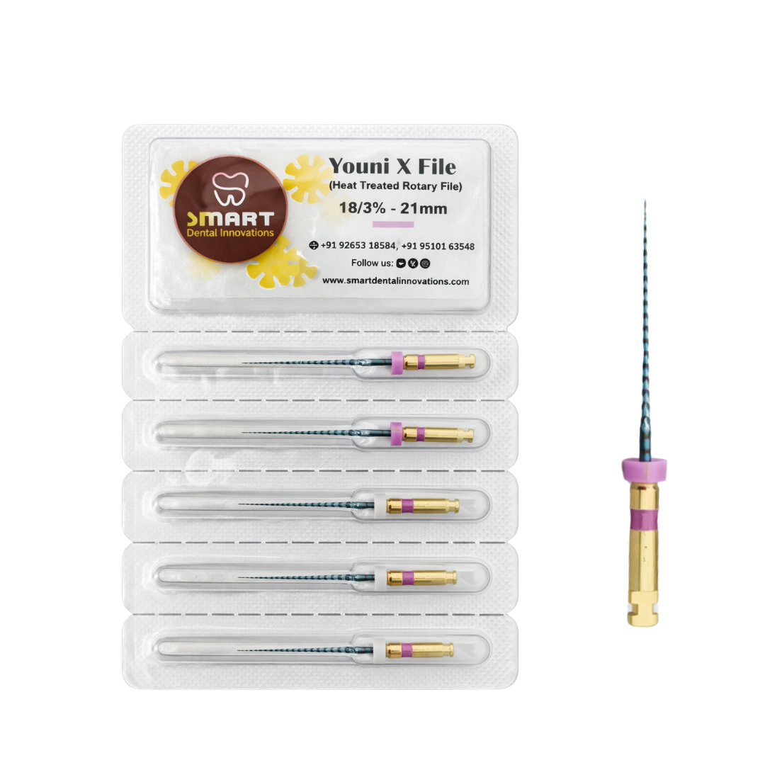 Answer: Youni x file is a high-performance rotary nickel-titanium endodontic file designed for safe, flexible, and efficient root canal shaping. it is heat-treated to enhance flexibility and resistance to file separation.