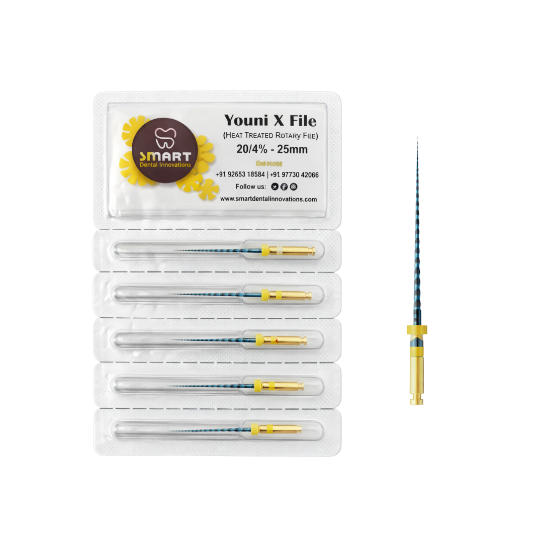 Answer: Youni x file is a high-performance rotary nickel-titanium endodontic file designed for safe, flexible, and efficient root canal shaping. it is heat-treated to enhance flexibility and resistance to file separation.