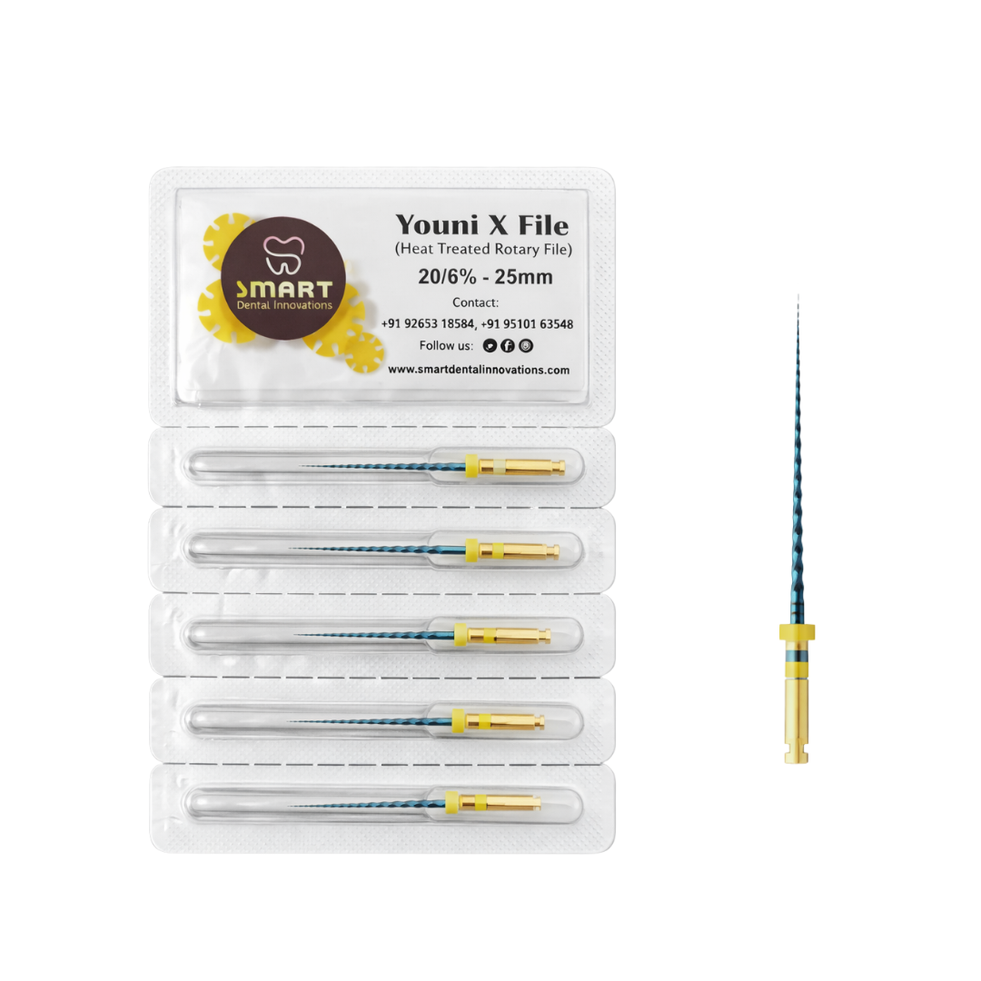 Answer: Youni x file is a high-performance rotary nickel-titanium endodontic file designed for safe, flexible, and efficient root canal shaping. it is heat-treated to enhance flexibility and resistance to file separation.