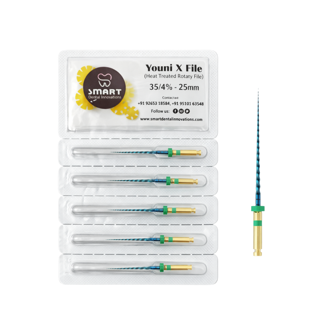 Answer: Youni x file is a high-performance rotary nickel-titanium endodontic file designed for safe, flexible, and efficient root canal shaping. it is heat-treated to enhance flexibility and resistance to file separation.