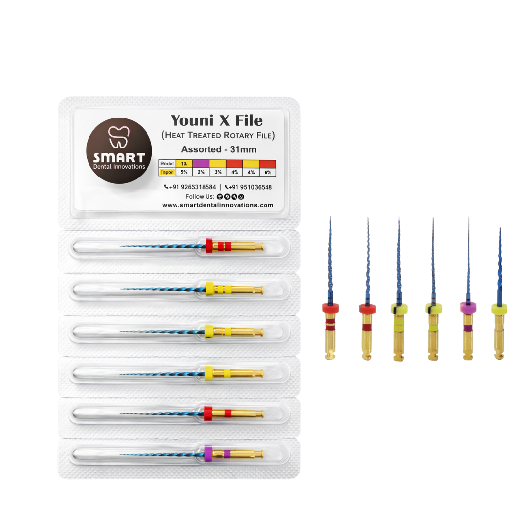 Answer: Youni x file is a high-performance rotary nickel-titanium endodontic file designed for safe, flexible, and efficient root canal shaping. it is heat-treated to enhance flexibility and resistance to file separation.